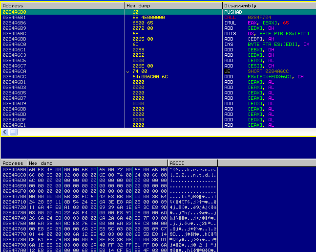 and other variables referenced on the screenshot (here, all of them are listed one by one forming a sequence used to launch the shellcode):