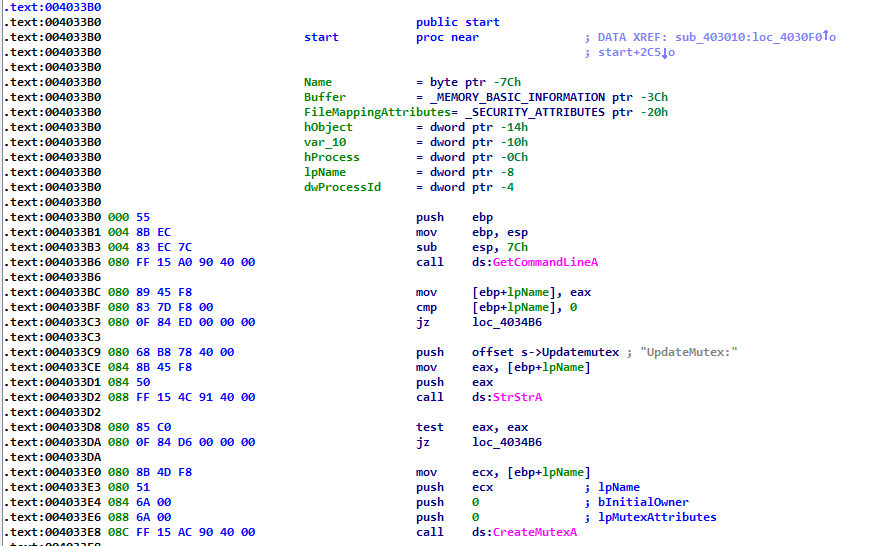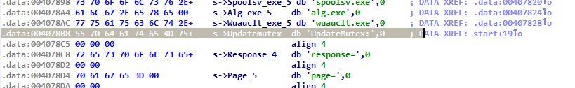 In the below example (Dexter sample) IDA recognizes the string “UpdateMutex:”