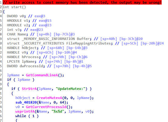 strings_1When we now switch to the decompiler view, we will see that the decompiler changes it to s__Updatemutex: