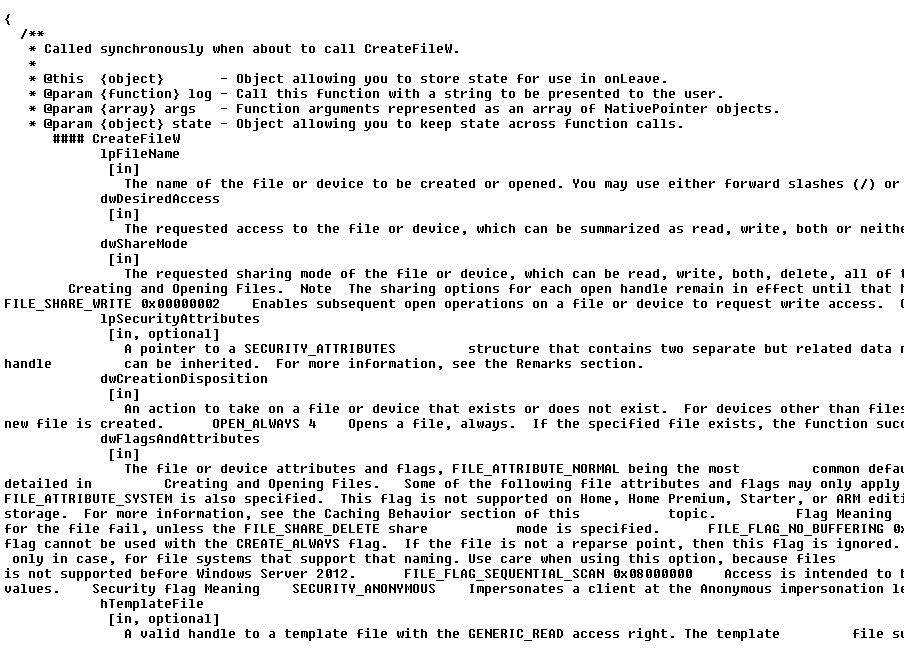 - dwDesiredAccess is converted to a more readable flag dwDesiredAccess=GENERIC_READ (0x80000000) – this was a test of an idea, and it seem to work so can probably pretty quickly expand other attributes as well