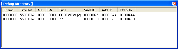 Example debug section from “\Program Files\Common Files\System\DirectDB.dll” as seen by Lord PE: